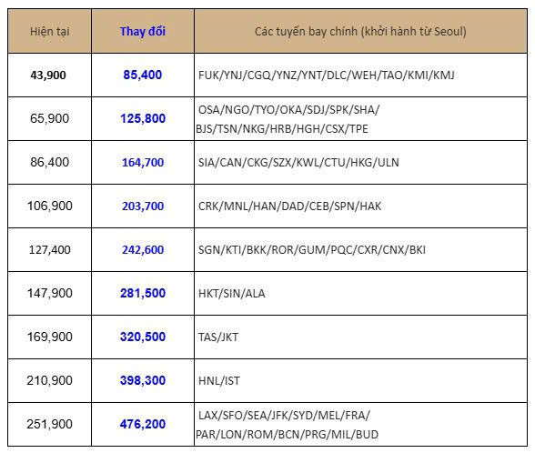 Chúng tôi xin thông báo về việc điều chỉnh phụ thu nhiên liệu (Fuel Surcharge) đối với các chuyến bay khởi hành từ Hàn Quốc như sau: