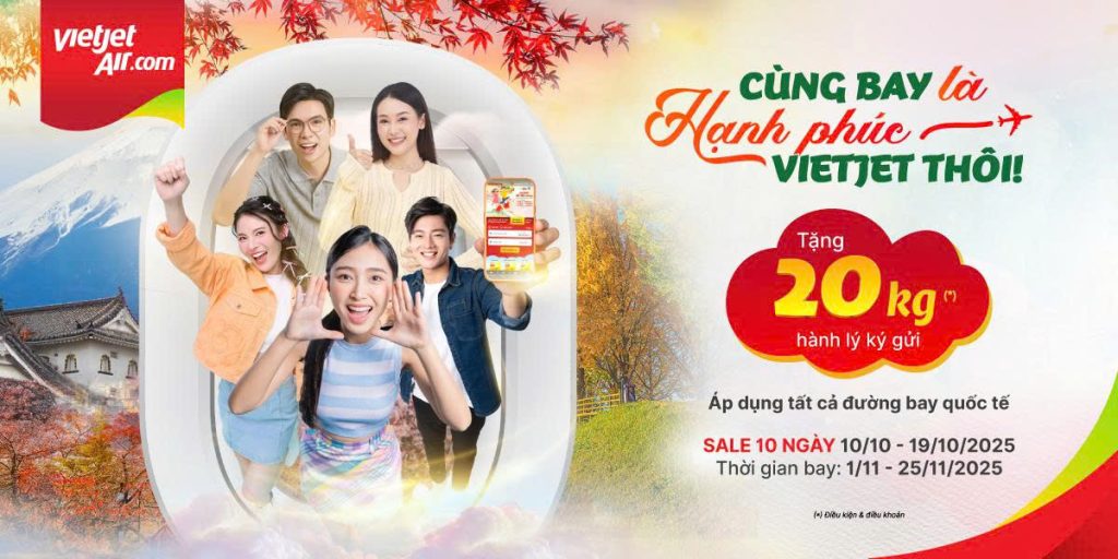 TPV – VJ – Tặng 20kg hành lý cho tất cả chặng bay quốc tế